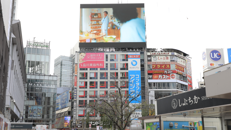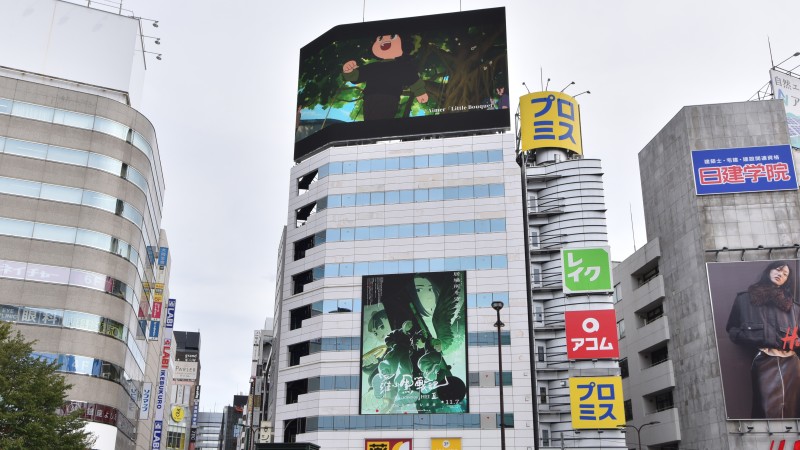 - 池袋駅東口エリアに位置し、2面合計300m2以上のサイズを誇る大型デジタルサイネージ