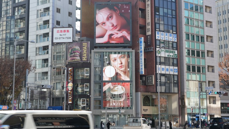 - 合計96.25㎡のサイズを誇る一棟全面がLEDビジョンの媒体