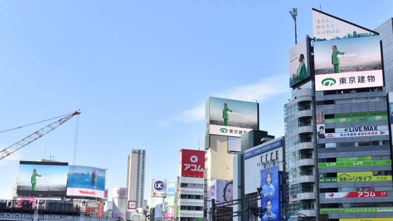 - 渋谷ハチ公前広場に位置し、単面広告用では日本最大級のデジタルサイネージ